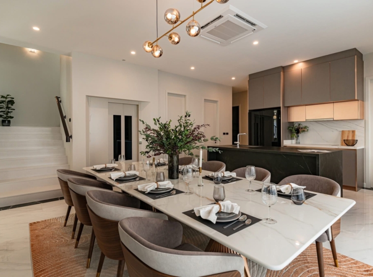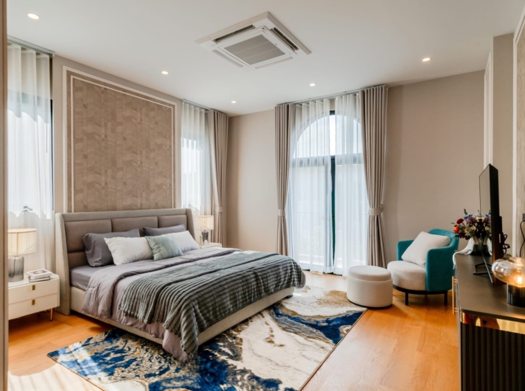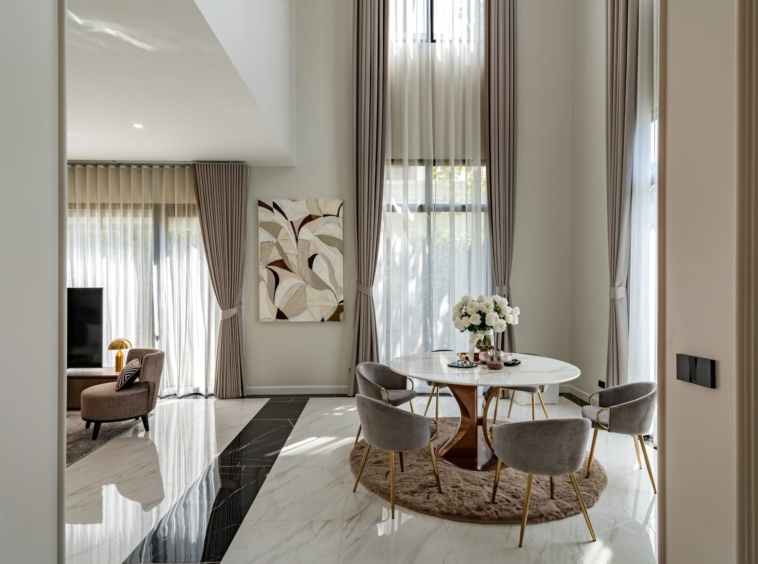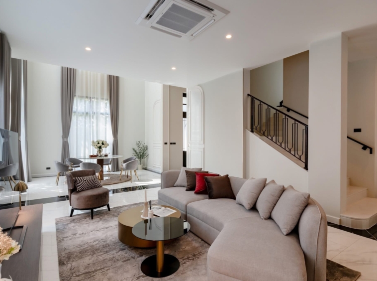 CINQ ROYAL Krungthep Kreetha is an exceptional luxury residence in the prestigious Saphan Sung area, offering expansive living across three elegant storeys. Set on 120 sq.w. of land with an impressive 705 sq.m. of usable space, this fully furnished “Soul Type” home features 5 bedrooms, 6 bathrooms, and 4 versatile multipurpose rooms. Designed for refined living, the property includes a private lift, pantry and Thai kitchen, and parking for 4 cars, all within a brand-new home that has never been lived in. Residents enjoy premium facilities including a clubhouse, swimming pool, gym, playground, and 24-hour security. Available for rent at 690,000 THB per month or for sale at 89,000,000 THB, this residence represents a rare opportunity for upscale family living.
