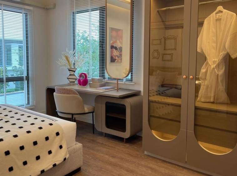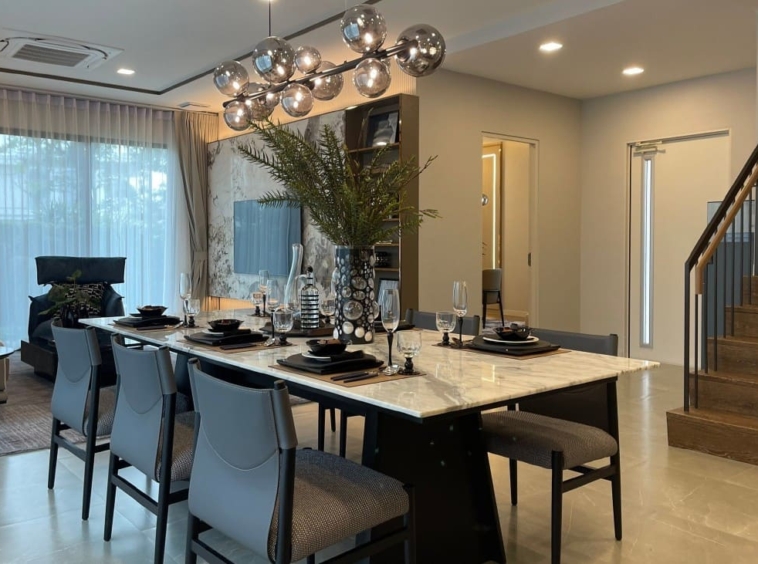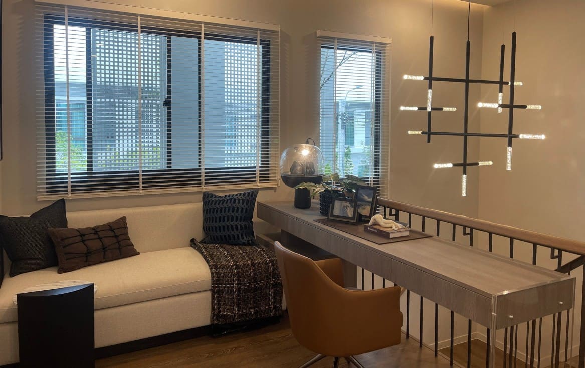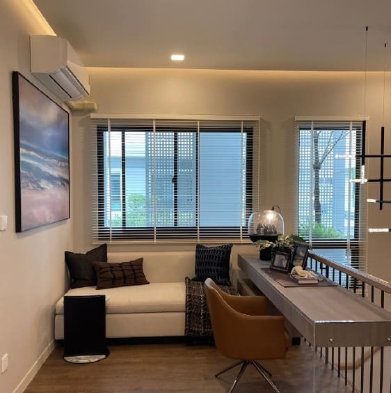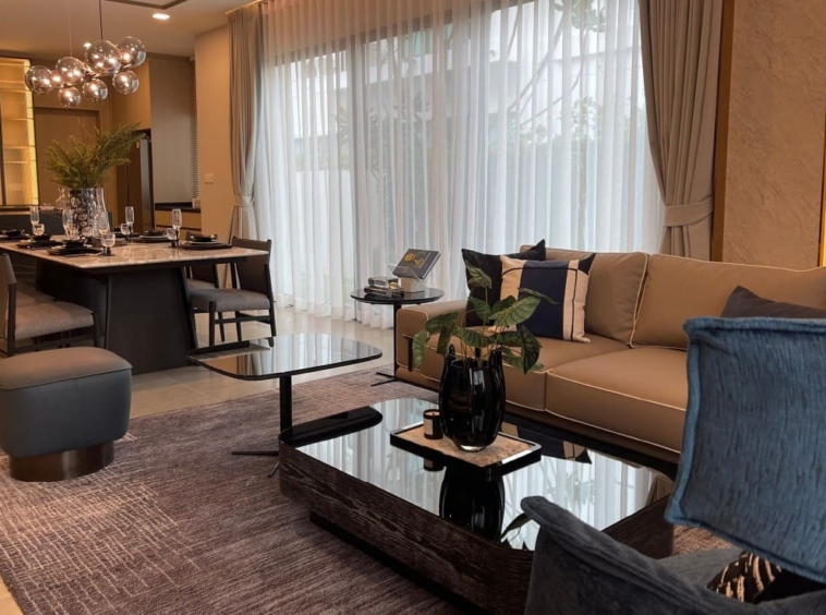 Mantana Bangna KM.15 presents a beautifully designed luxury home in the Bangna area, offering both space and privacy for modern family living. Set on 90 sq.w. of land with 283 sq.m. of usable area, this fully furnished Elite Model features 4 bedrooms, 5 bathrooms, and a dedicated maid’s room across two storeys. The thoughtfully planned layout is complemented by generous living spaces and parking for up to 4 cars. Residents enjoy a secure and comfortable lifestyle with premium facilities including an automatic gate, swimming pool, fitness center, landscaped garden, and 24-hour security. Available for rent at 190,000 THB per month, this home is ideal for those seeking refined suburban living near Bangkok.